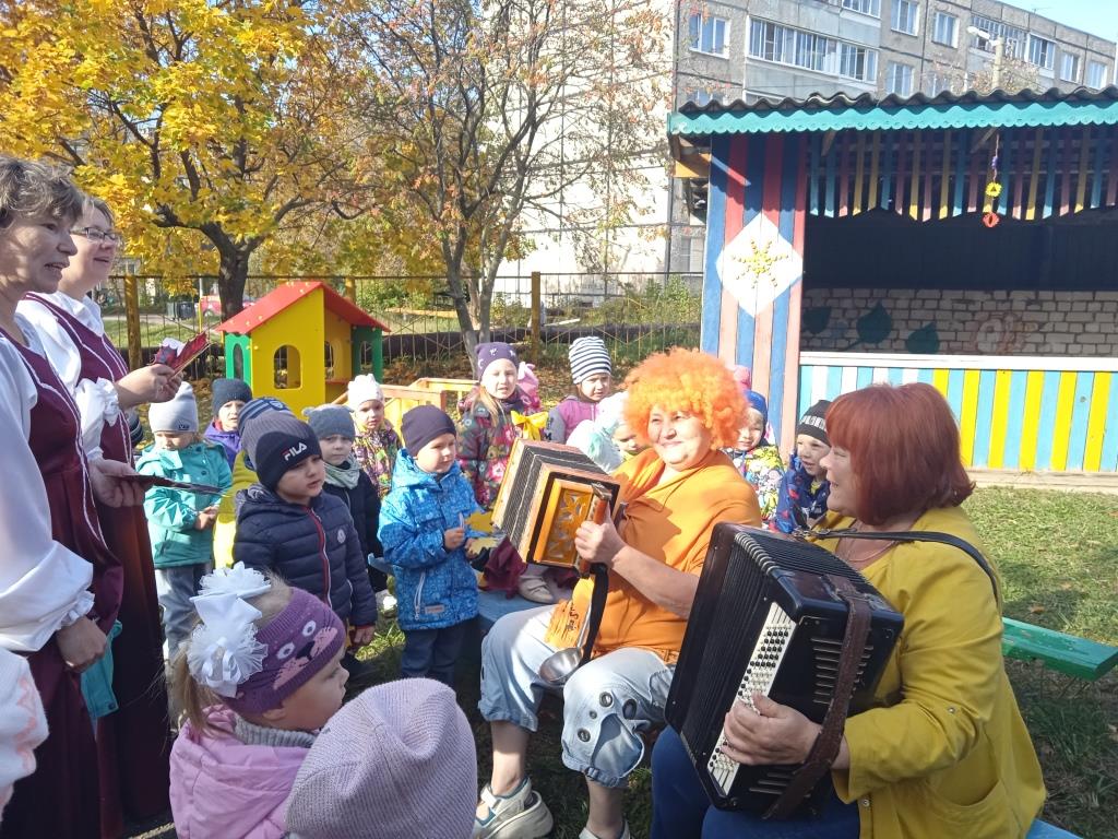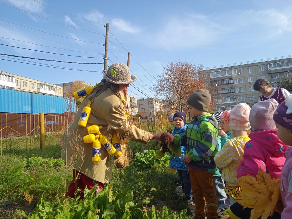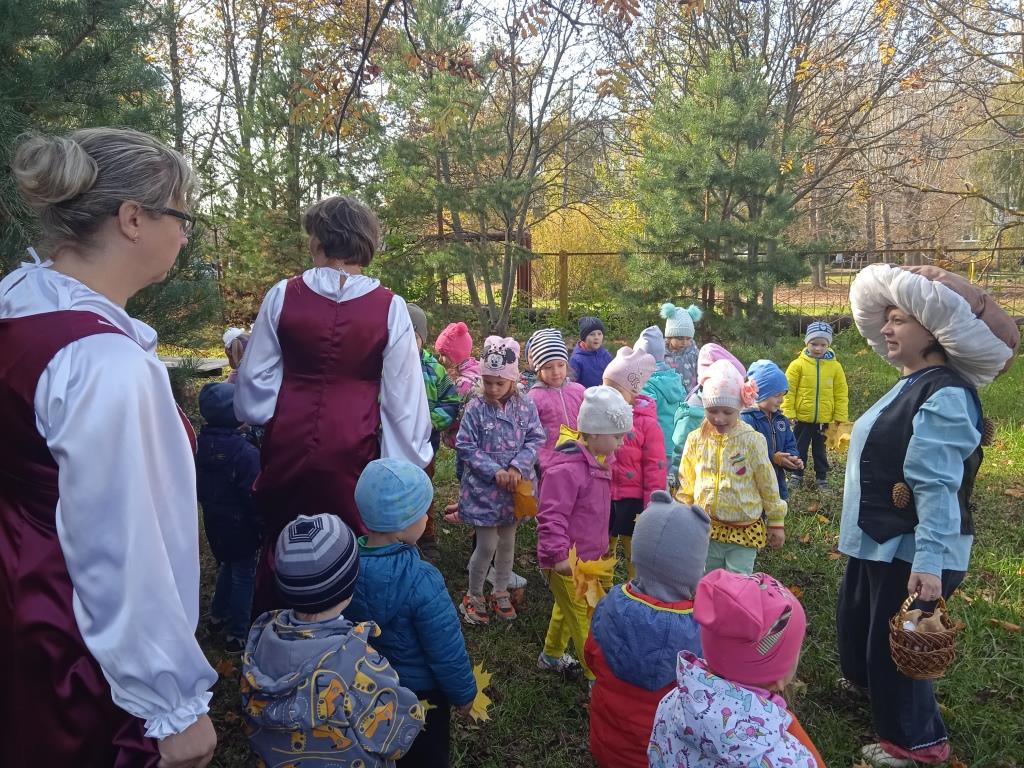 И гости тоже необычные: дворник с желтой метлой, Тит, который последний гриб растит, Антошка со своей гармошкой и ложкой, Пугало-Огородное и Королева Осень. Дети не просто радовались, совершая н путешествие-сюрприз по всем уголкам территории детского сада: лес, огород, цветники, аллеи, спортивная площадка.