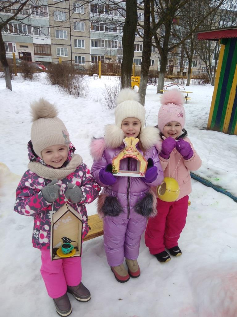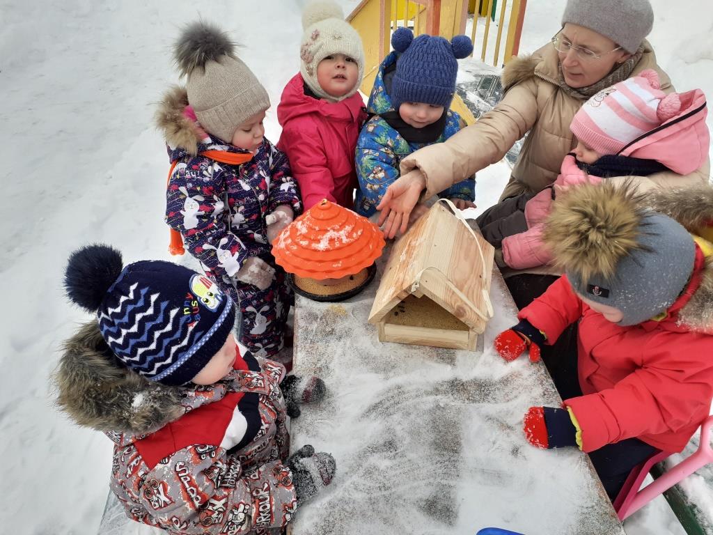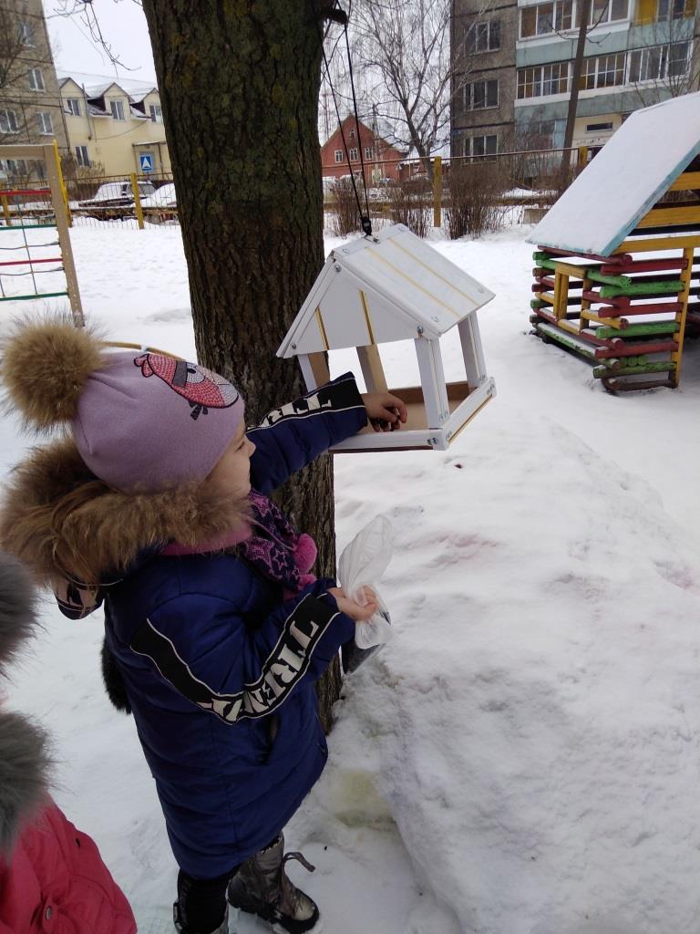 Проявили творчество и фантазию. Дети принесли корм для птиц и с удовольствием угощали синичек салом, воробьёв семечками, свиристелей и снегирей ягодами рябины,которые заготовили еще осенью, голубей хлебными крошками.