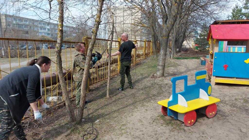 В детском саду проводится весенний субботник. Наши папы решили в первую очередь сделать наши участки безопасными: произвести опиловку деревьев, удаление корней, выравнивание территории, чтобы дети могли беспрепятственно играть, бегать , прыгать. Педагоги тоже приняли участие в субботнике. Субботник как и положено прошел в субботу. Это хорошая традиция - совместный труд с пользой для здоровья. Спасибо всем кто принял участие в субботнике