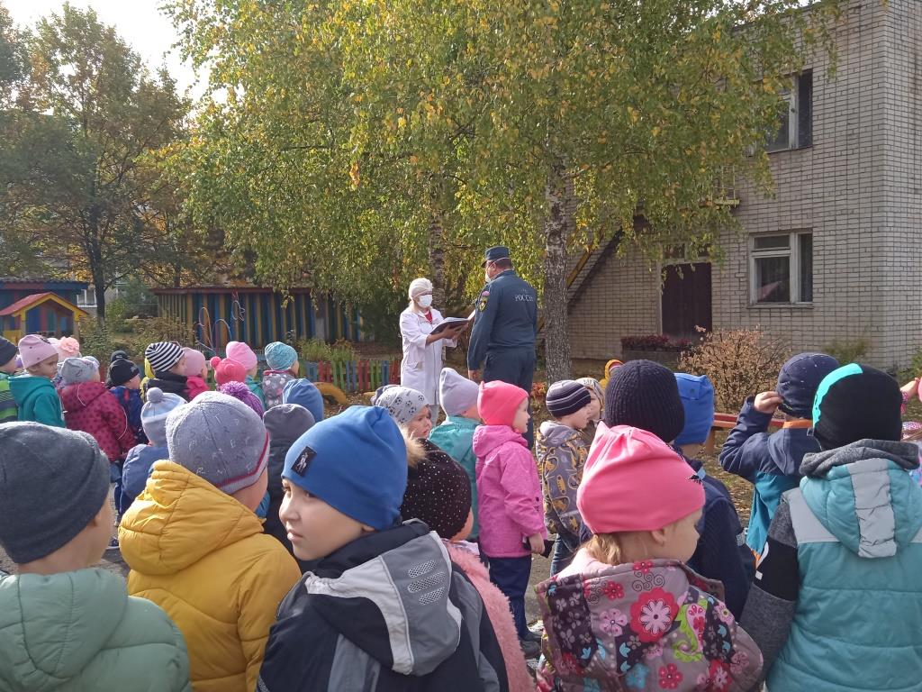 В рамках отрытого урока «Основы безопасности жизнедеятельности», посвященного «Дню Гражданской обороны Российской Федерации» в в детском саду проведена викторина «Сигналы гражданской обороны»; тренировка по разделу «Безопасность и защита человека в чрезвычайных ситуациях». В мероприятиях принял участие начальник части 32 ПСЧ 1 ПСО ФПС ГПС ГУ МЧС России по Владимирской области Черноволик А.Н., родители 10 человек, дети в количестве 60 человек. Дети и взрослые получили практические навыки.