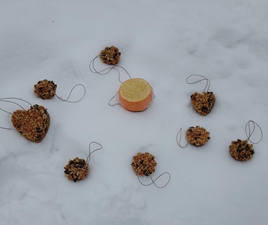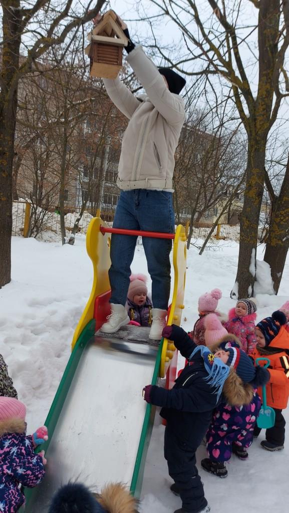 В детском саду прошла акция "Птицам счастье". Дети вместе с родителями, педагогами сделали интересные кормушки из различных экологических материалов: апельсина, семян, желатина, разных круп. Даже форма кормушек интересная: шар, машина, геометрические формы. Спасибо всем кто принял участие в конкурсе. Весной птицы своими песнями скажут всем спасибо