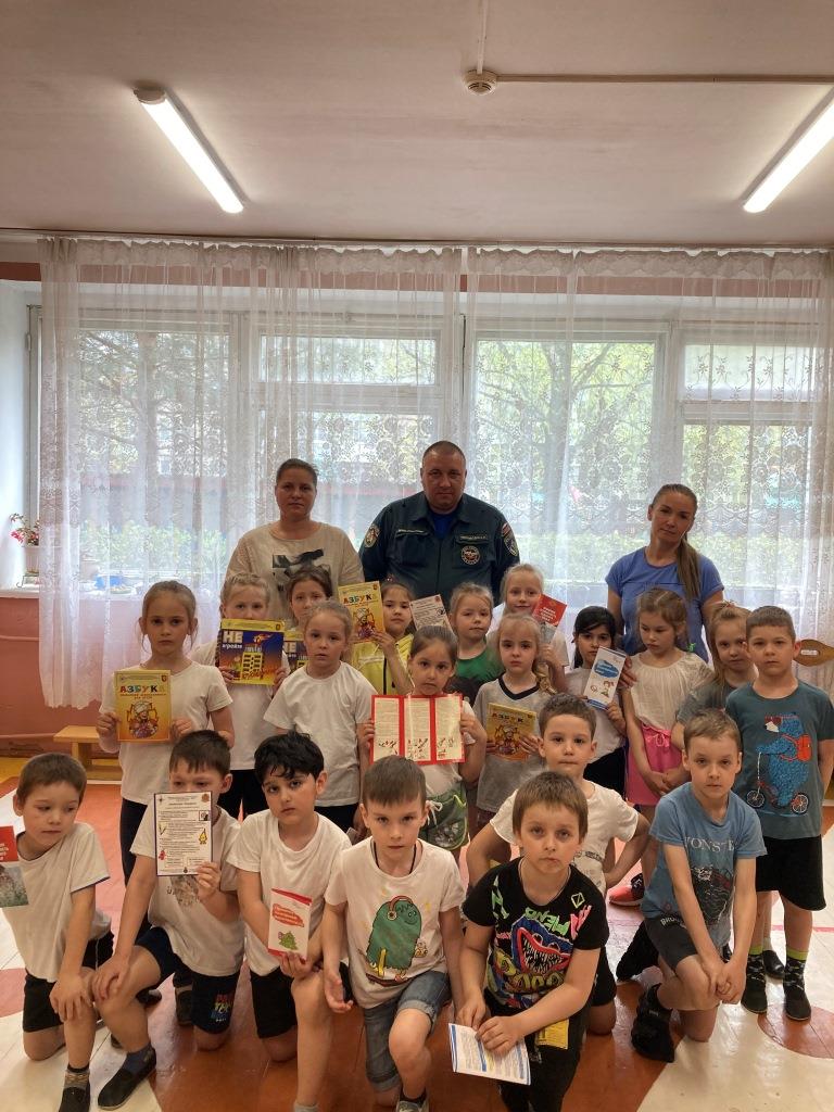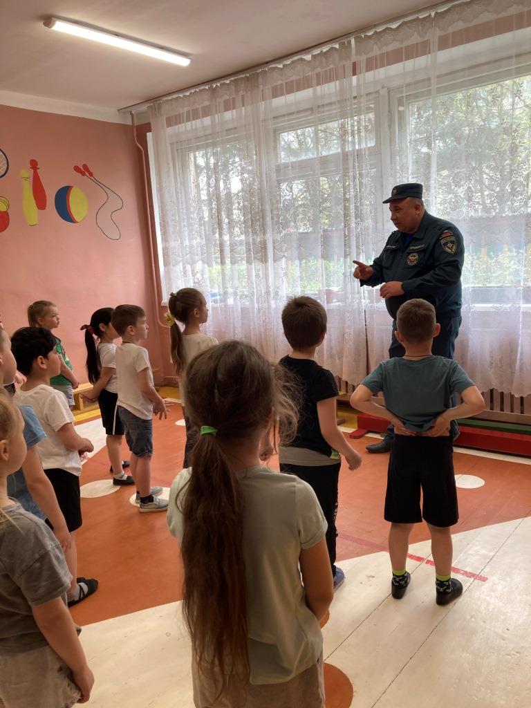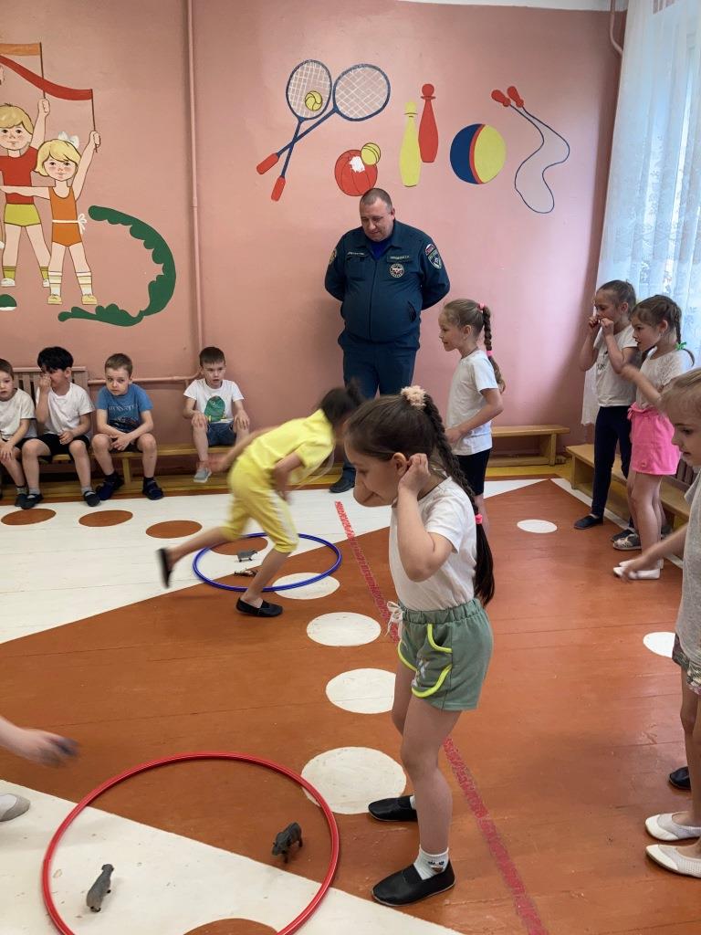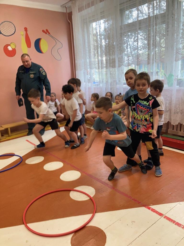 В рамках месячника, посвященного пожарной безопасности. в гости к ребятам пришел начальник части 32ПСЧ 1 ПСО ФПС ГПС ГУ МЧС России по Владимирской области Черноволик Алексей Николаевич. Он рассказал о правилах безопасного поведения при пожаре, об опасных ситуациях. Вместе с педагогами провел физкультурный досуг "Юные спасатели" Все получили от главного пожарного памятные награды.