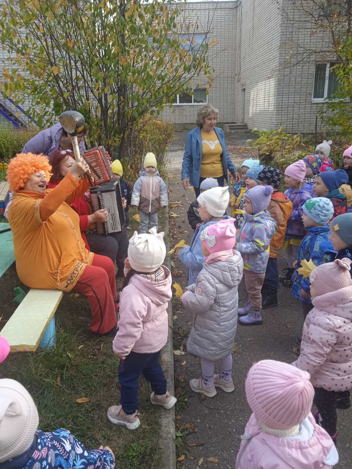 И снова у нас в Родничке:"вдруг все желтым стало вокруг" листья на деревьях,элементы одежды, карусель из желтого зонтика и разноцветных ленточек, песни , стихи и угощение. Удивительный праздник подарили детям педагоги, сотрудники детского сада, уважаемые родители. Ну что скажешь; "Красота, да и только" Всем огромное спасибо. Желтой, Левитановской осени всем, прекрасных впечатлений