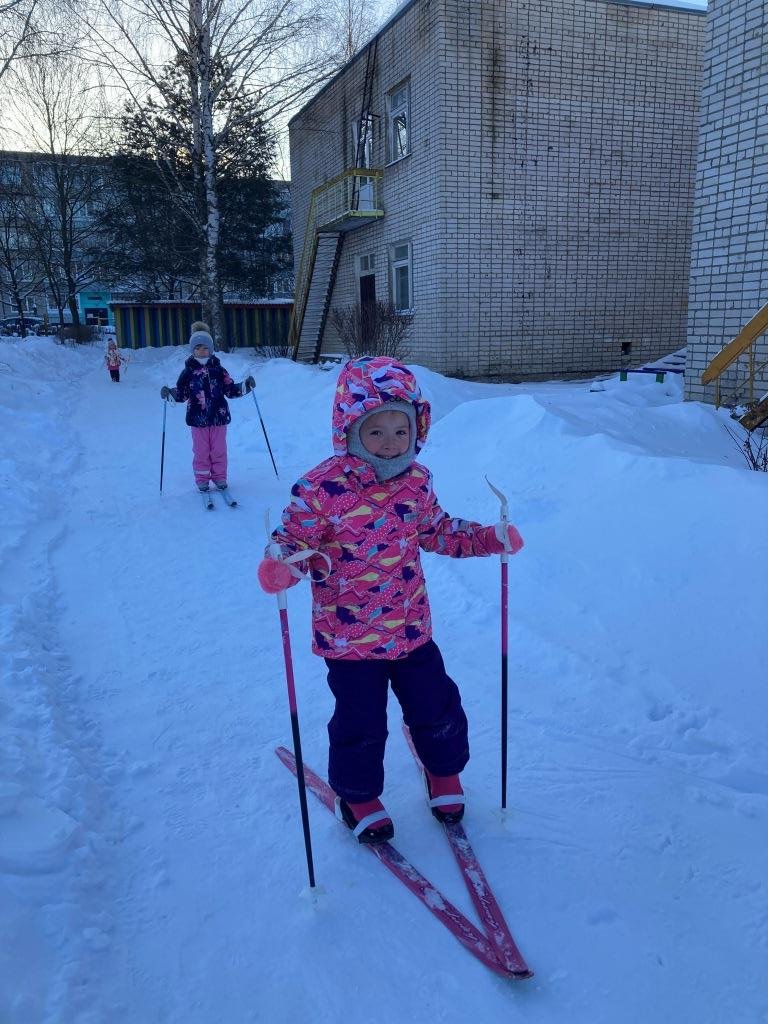 Рады дети детского сада лыжным прогулкам, скрипит снежок под лыжами, краснеют щеки от легкого морозца, дети получают положительные эмоции и заряжаются здоровьем.