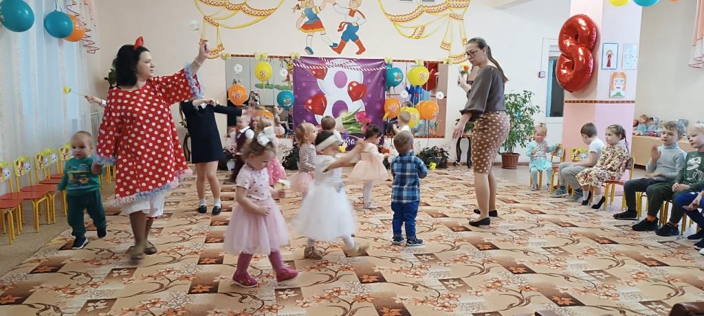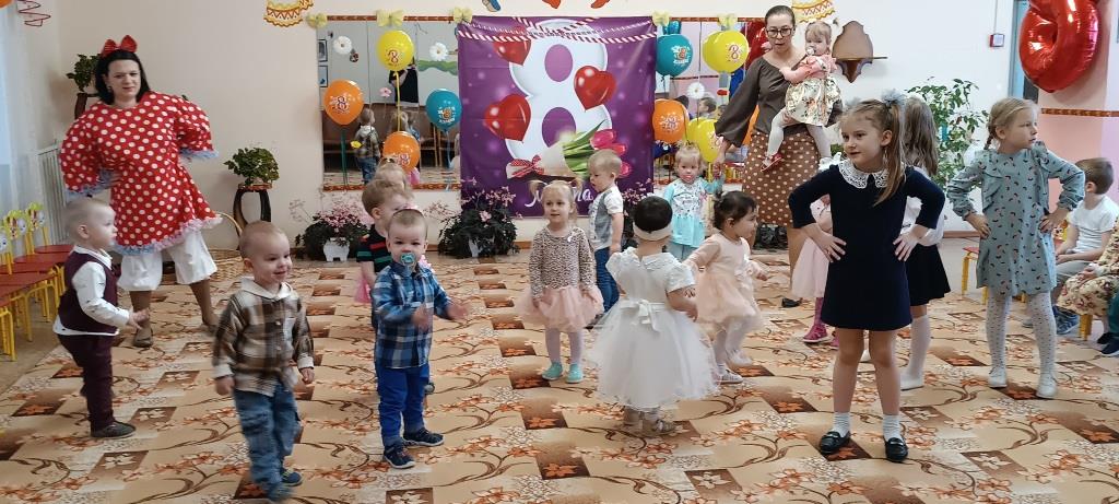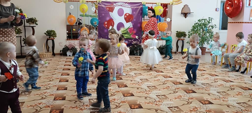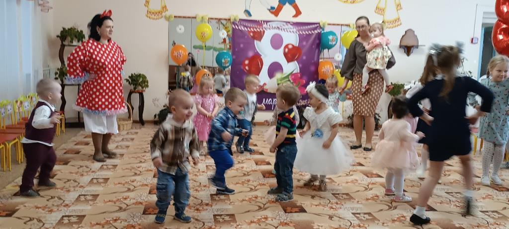 Открыли череду праздников для мамы, самые маленькие:дети группы "Ладушки" Все для вас наши любимые: песни, танцы, стихи, наряды.