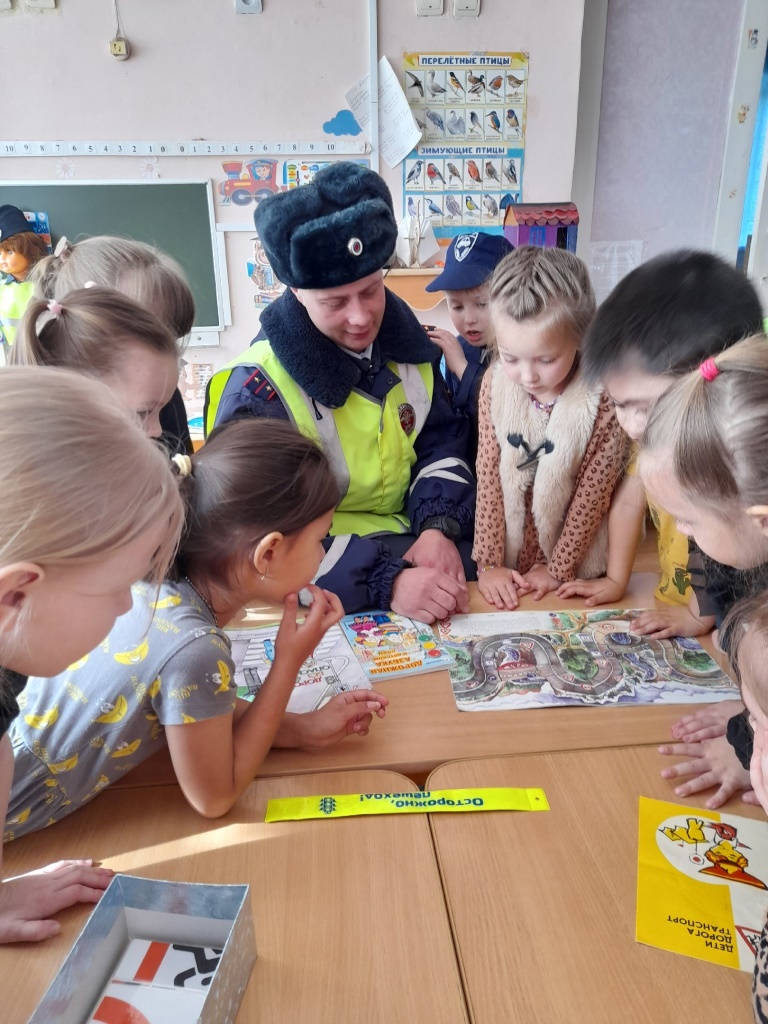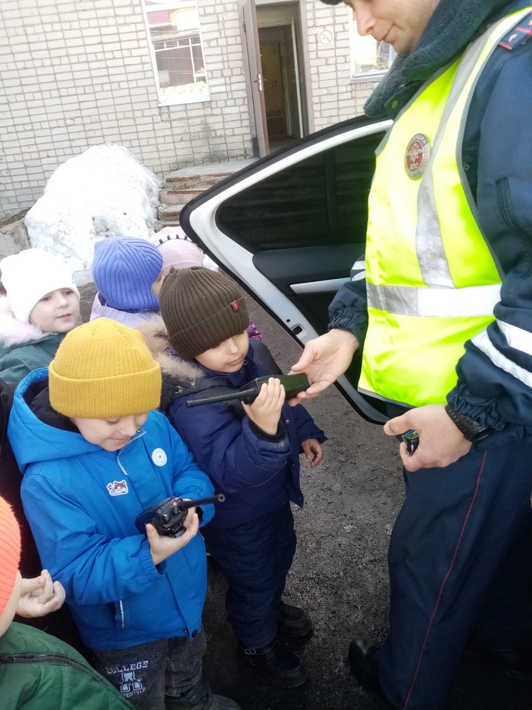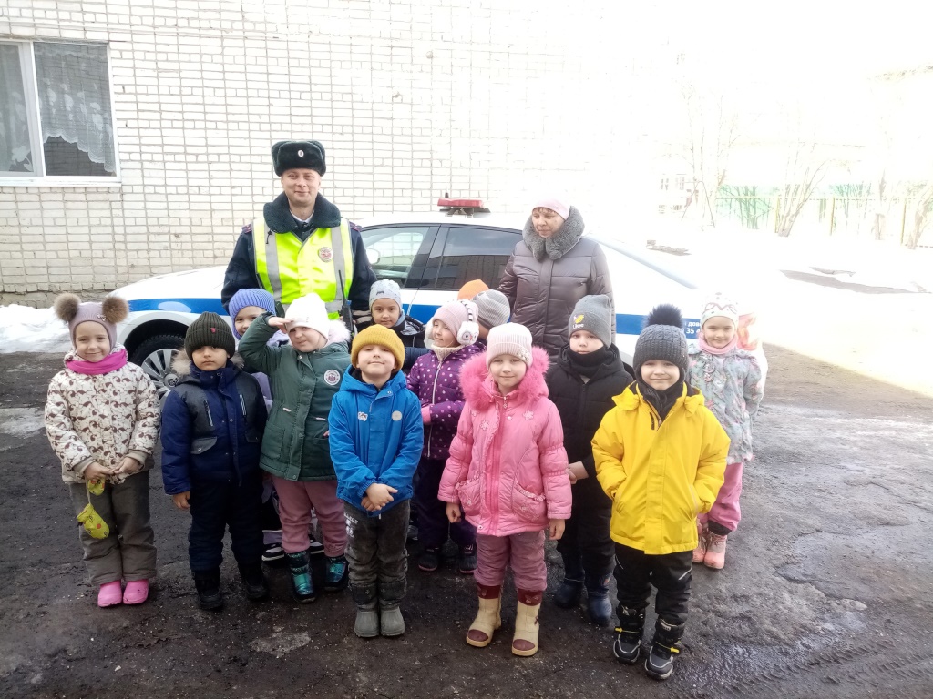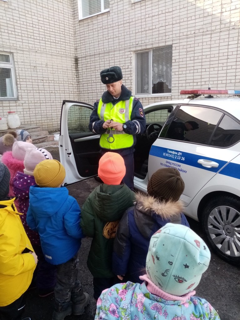 В рамках недели "Безопасного поведения на улицах и дорогах" в гостях у ребят инспектор ДПС Госавтоинспекции ОМВД России по Собинскому району Лукьянов Д.С. В беседе с детьми были рассмотрены вопросы знания дорожных знаков, правила поведения на улицах и дорогах, в том числе в темное время суток, использования светооражающих элементов. Самым интересным было знакомство с машиной ДПС, использованием рации.