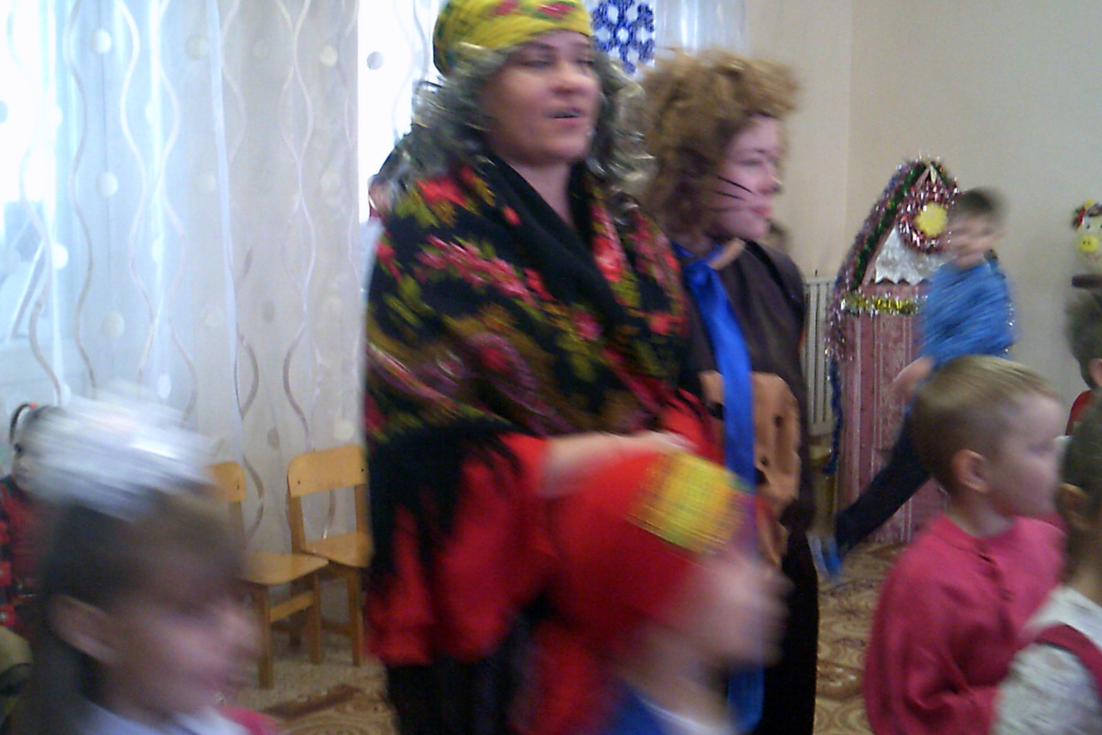 Колядовщики: взрослые и дети, цыганка с медведем,