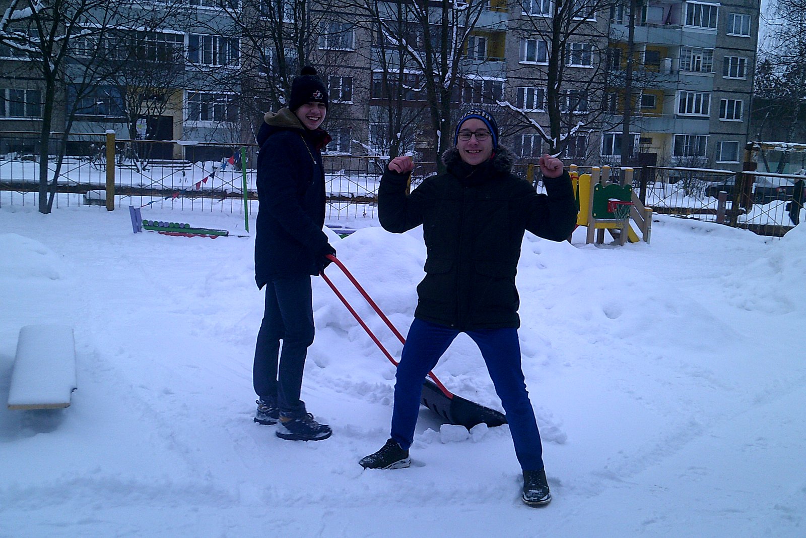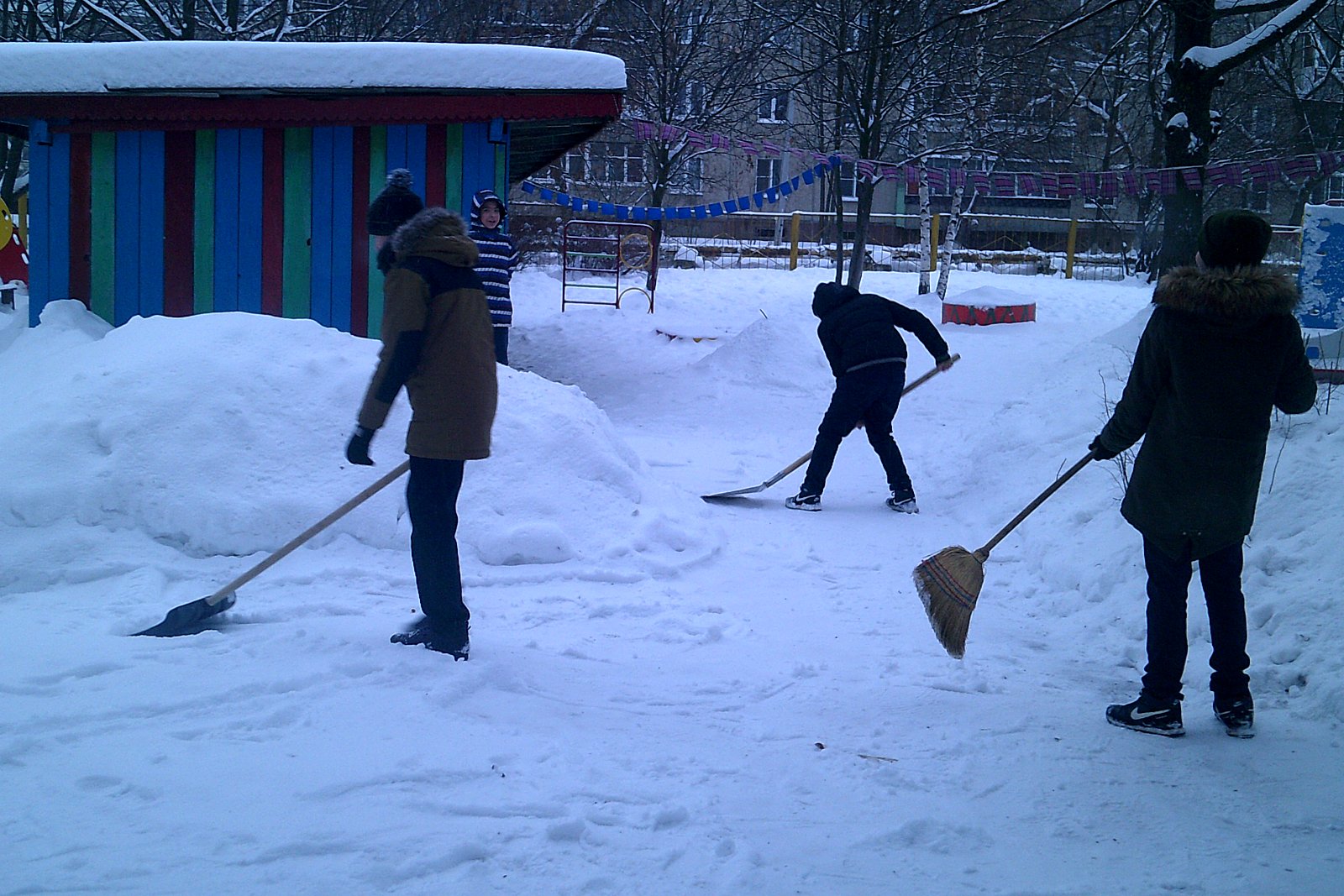 Зима в этом году выдалась снежная. Своими силами справиться со снегом очень сложно . На помощь пришли школьники-волонтеры МБОУ СОШ №1 города Лакинска вместе со своим учителем. Они помогли расчистить участки, сделали снежные фигуры,