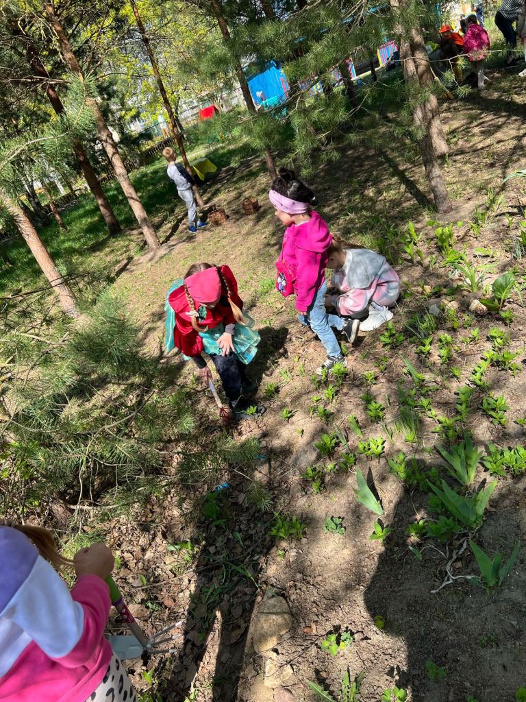В этот день дети вместе со сказочными героями «Эколятами» – друзьями и защитниками природы: Шалуном, Умницей, Тихоней и Ёлочкой, навели порядок в уголке леса детского сада, закрепили правила поведения в природе: