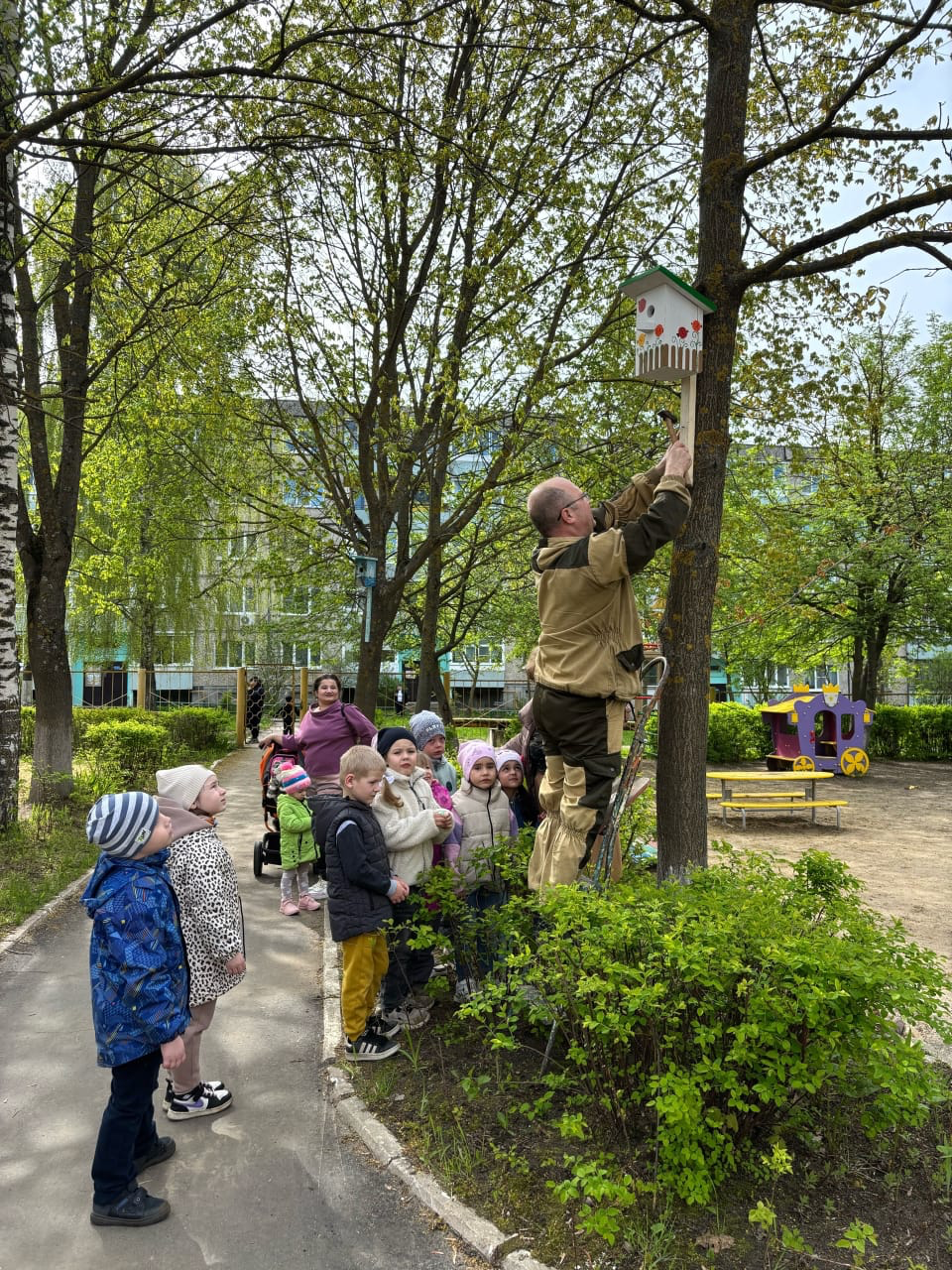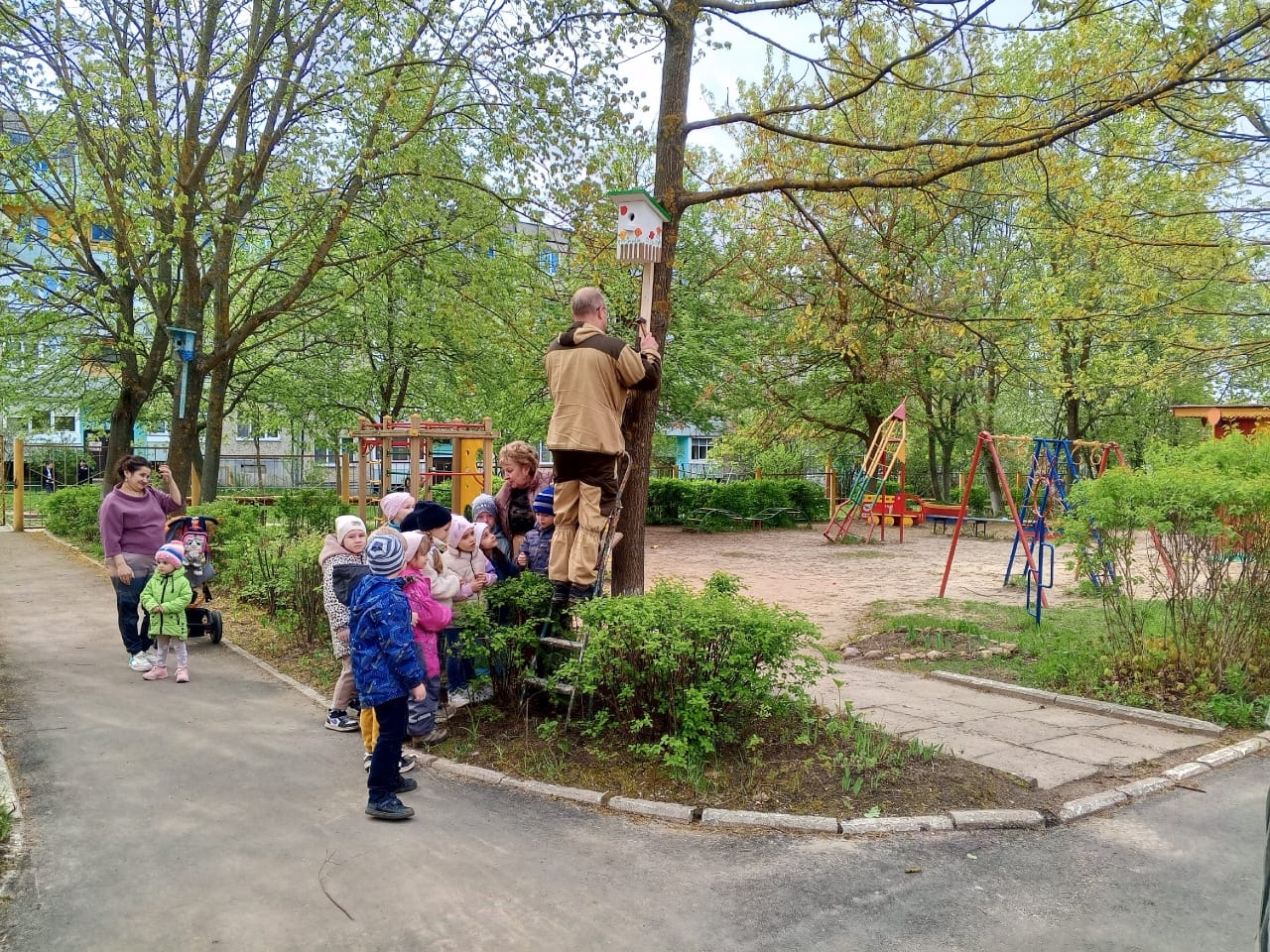 В рамках реализации федерального проекта «Эколята-дошколята», а также с целью расширения знаний об окружающем мире, в детском саду совместно с работниками Собинского лесничества проходит экологическая акция «Скворечники для птиц». Цель данной акции – привлечение внимания детей к проблеме защиты и сохранения окружающей среды, формирование активной гражданской позиции в решении экологических проблем, развитие интереса к процессу познания природы и творческих способностей у детей, содействие развитию семейных традиций, повышение уровня экологической культуры семьи. Сотрудники лесничества изготовили настоящие скворечники и закрепили их на деревьях. Сколько стараний и любви приложили они к своей работе.Проведение таких акций в детском саду позволяет способствовать развитию у детей познавательного интереса к миру природы, воспитанию бережного отношению к растениям, животным и птицам, формированию навыков природоохранной деятельности